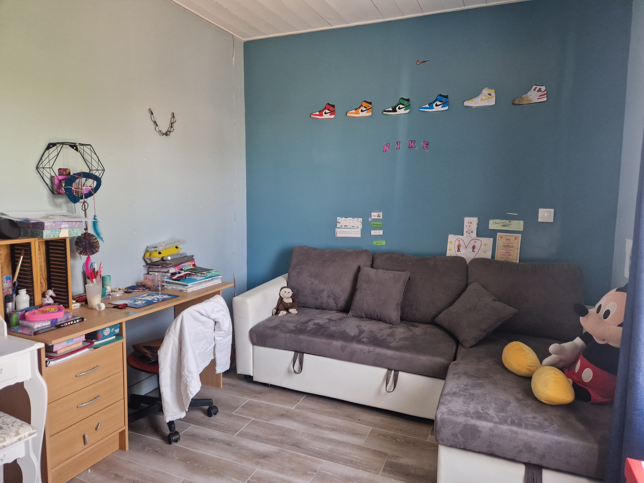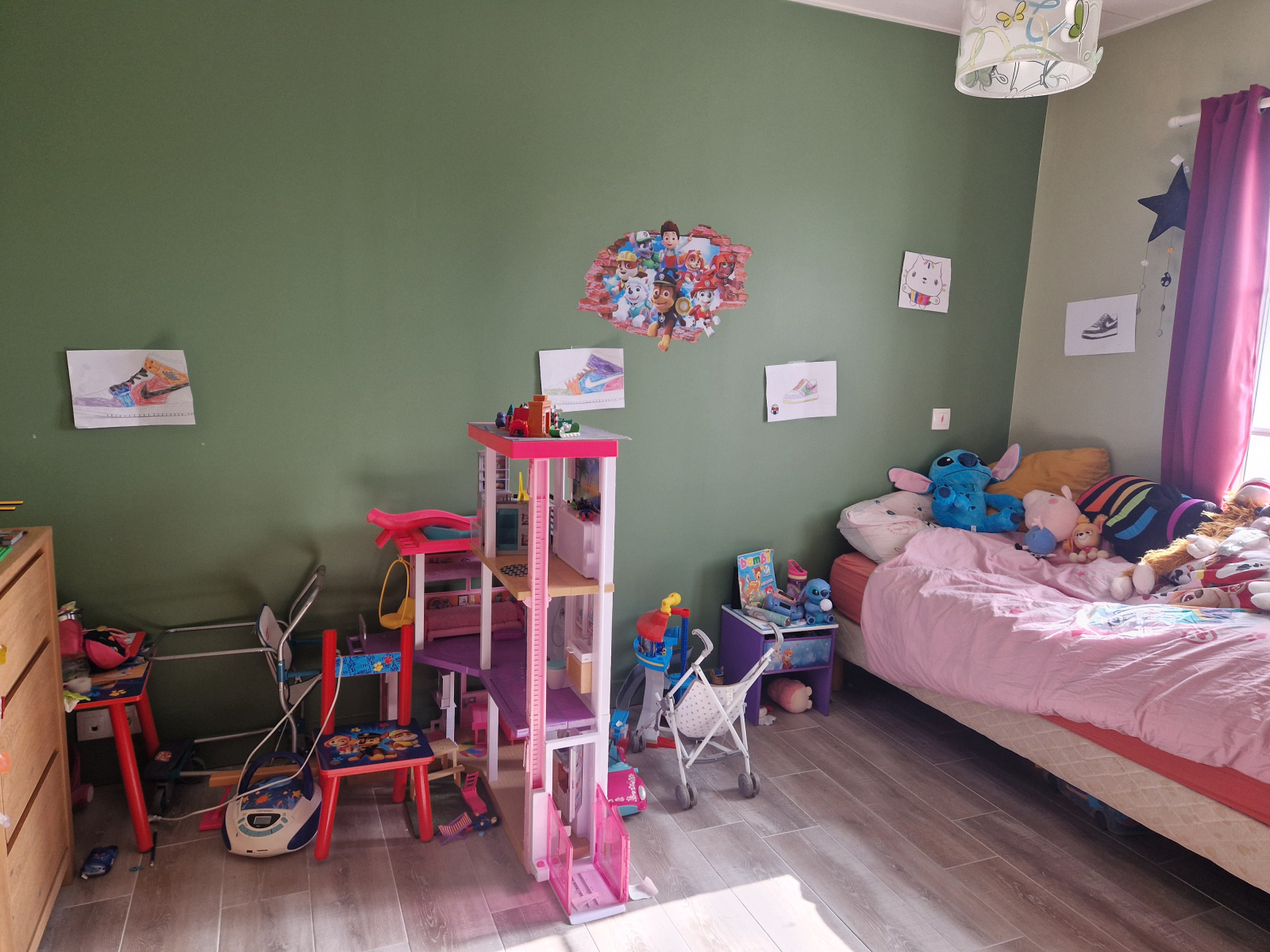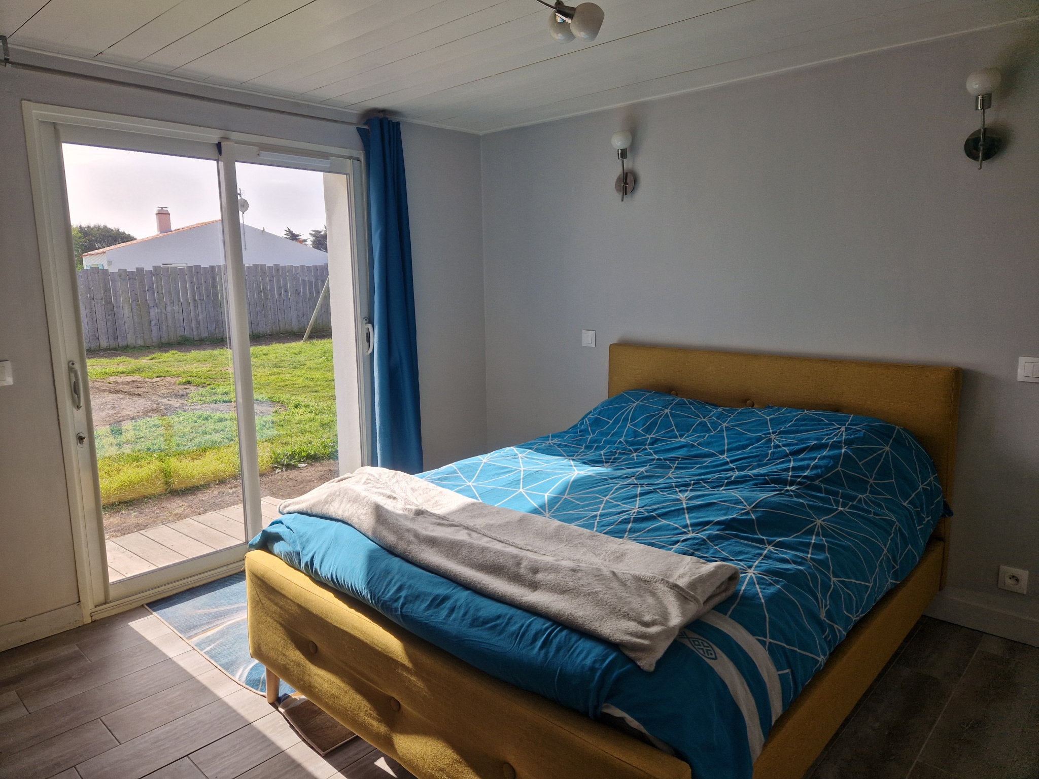 de l'autre côté du séjour, une suite parentale avec Chambre, dressing, salle d'eau, WC, cellier et garage.