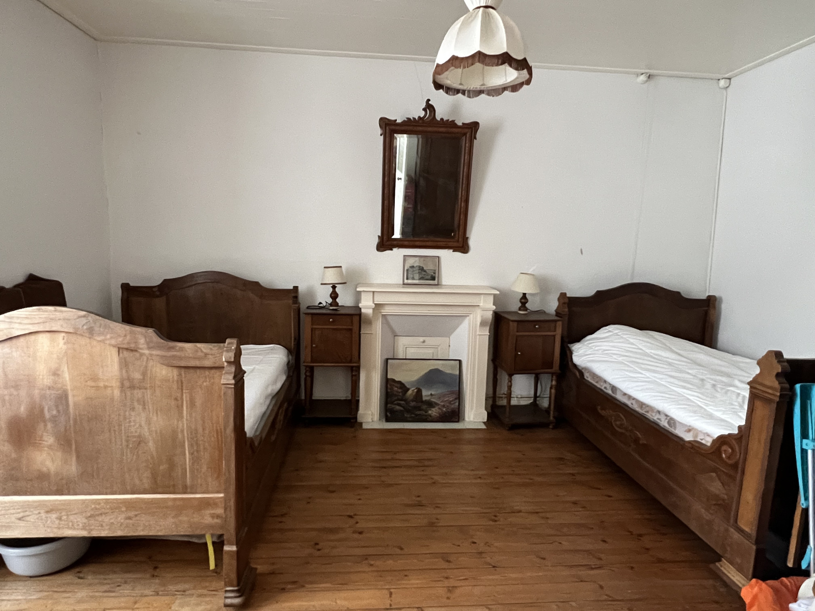 Maison familiale se composant d'une salle à manger, une cuisine repas, 3 chambres, une salle d'eau/W.C. Un débarras. Maison mitoyenne: une entrée, une cuisine, une salle à manger/salon, une chambre, une salle de bains, W.C. Dans le cour: un atelier, un garage, une pièce avec W.C et lavabo. Bâtiments en pierre apparente : un débarras, une ancienne grange, une pièce avec le four. jardin clos de murs de pierre. Zone UP.