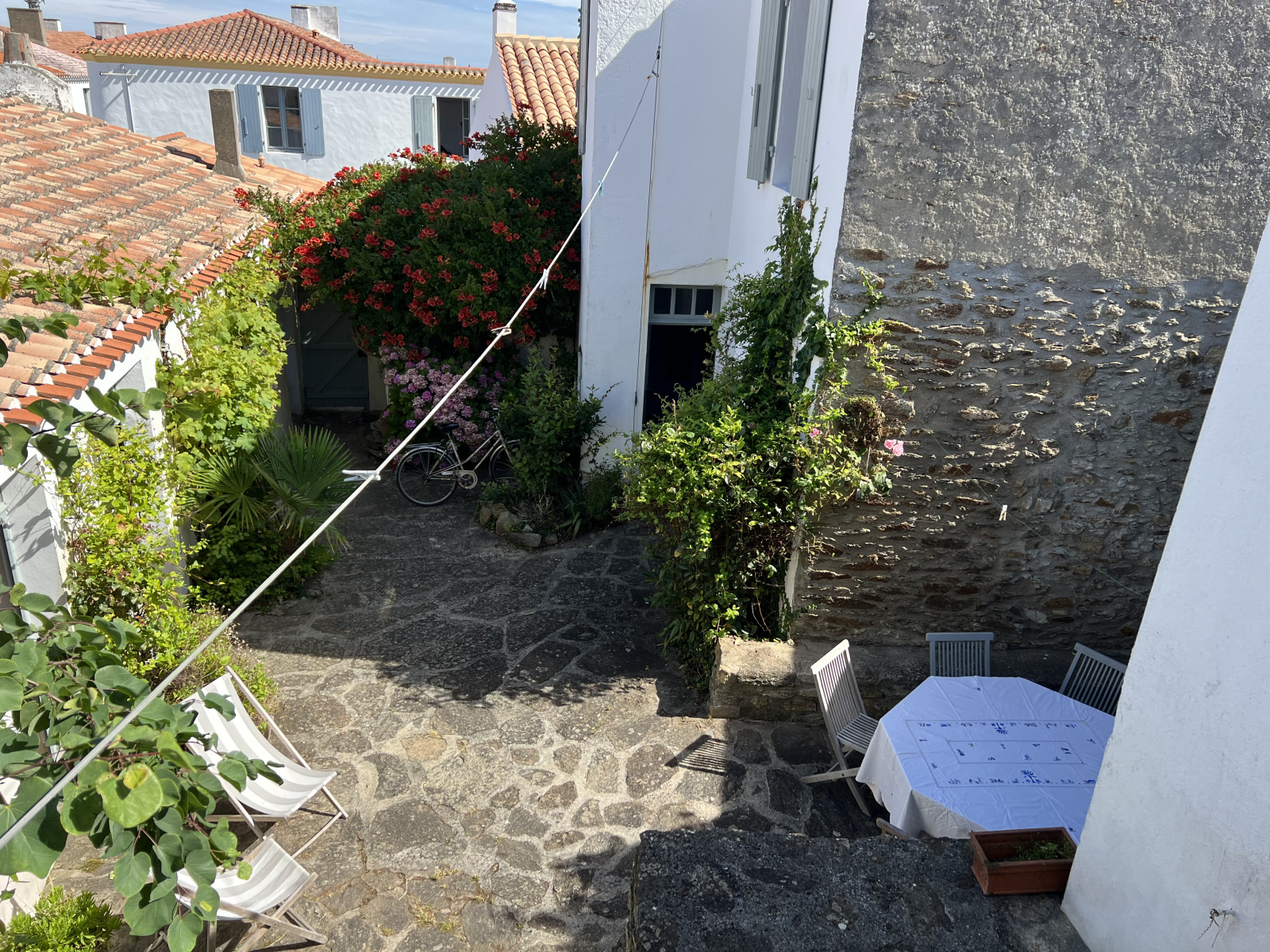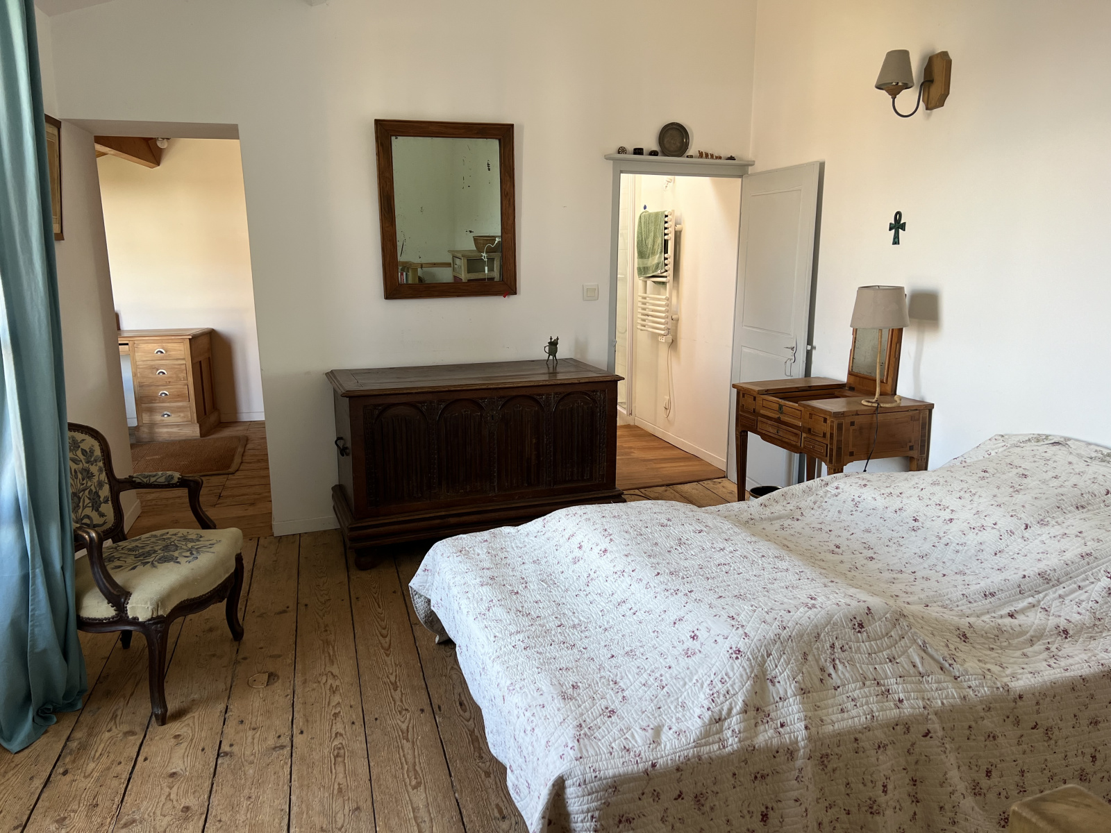 Charme et cachet pour cette batisse ancienne en pierre : entrée,, pièce de vie avec coin cuisine, couloir desservant un bureau, 3 chambres dont une avec lavabo, salle de bains avec douche, W.C. A l'étage : une chambre desservant une chambre et une salle d'eau W.C..A l'extérieur : garage à vélos, buanderie, chambre avec lavabo. A l'étage : 2 chambres avec lavabo. Cour en pierre. Visite virtuelle possible sur demande.