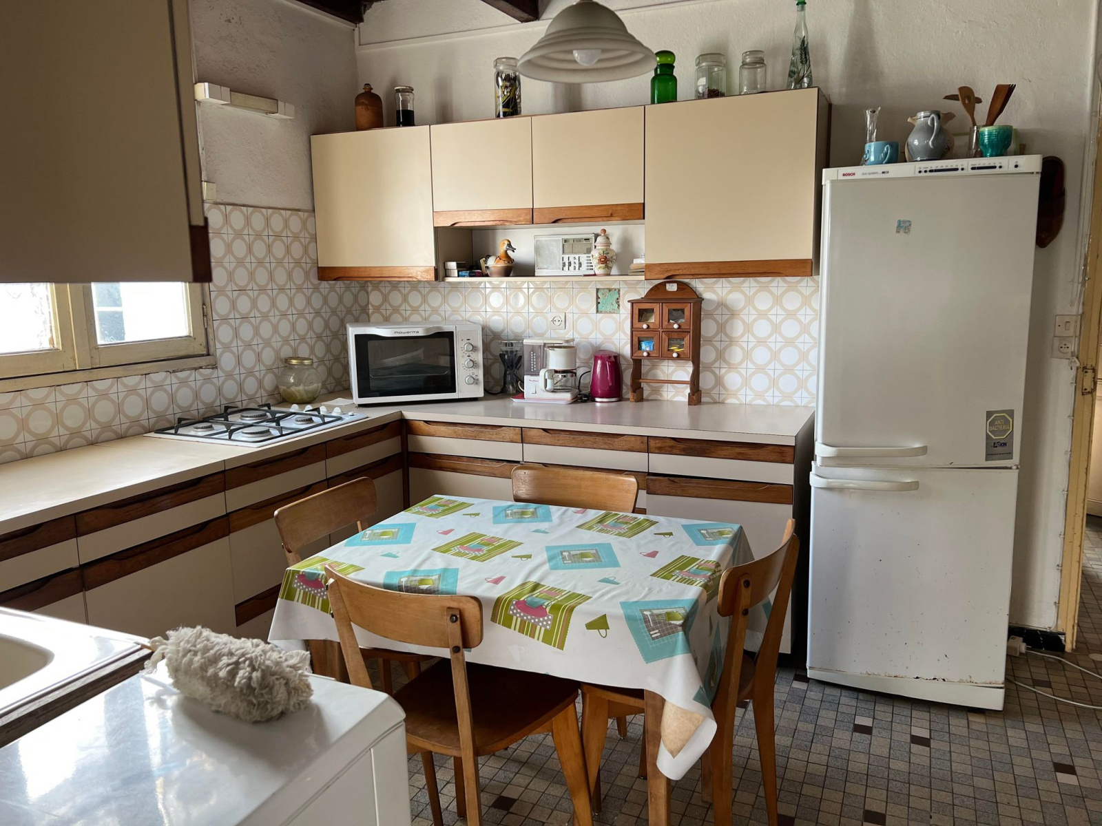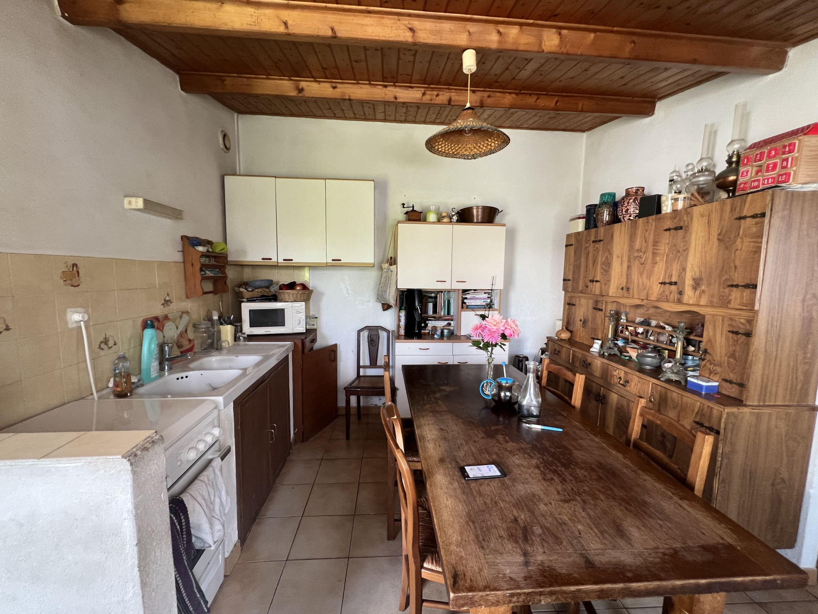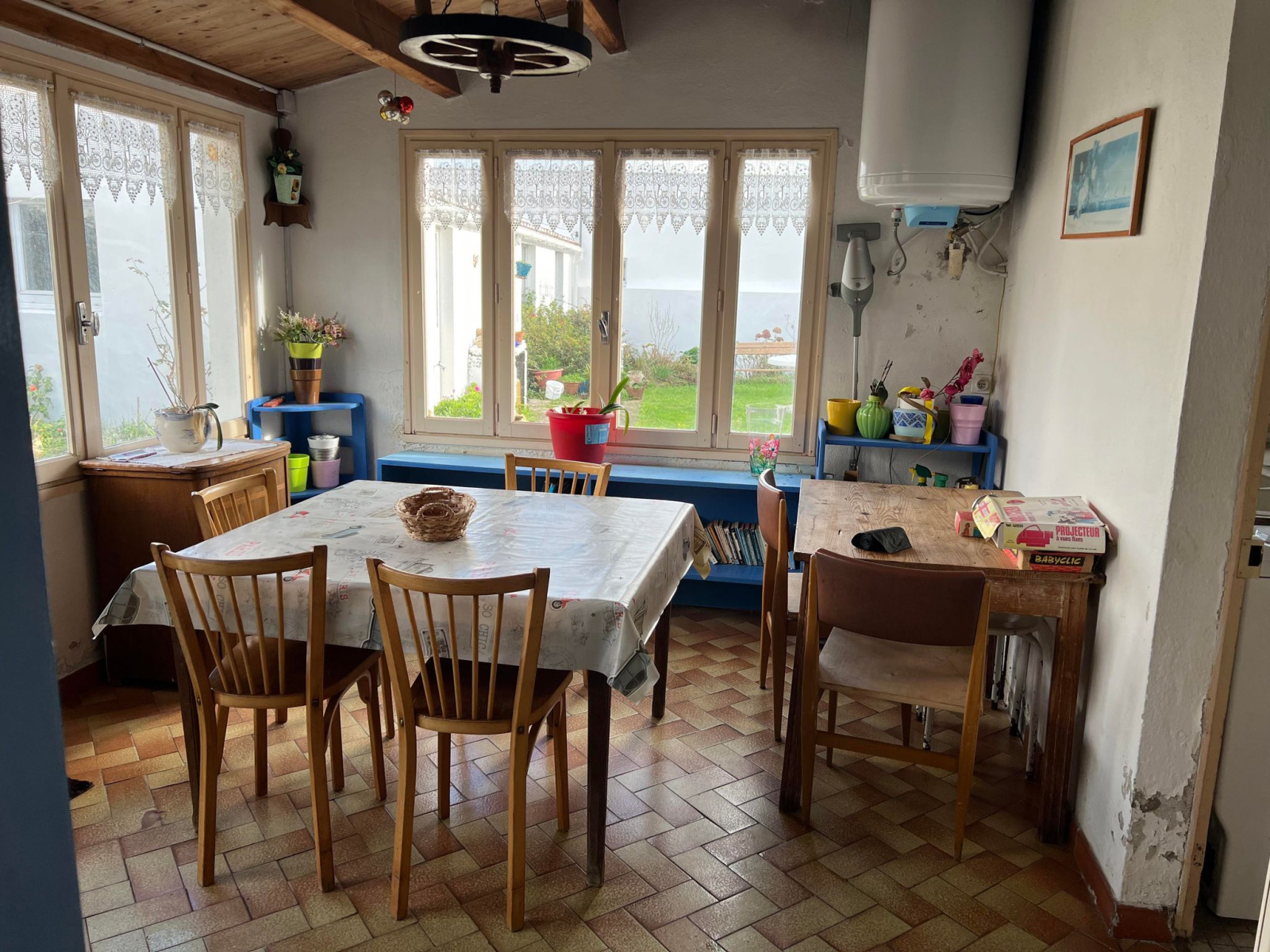 Bien immobilier comprenant deux maisons sur une belle parcelle constructible de 1115 m². 1ère maison comprenant : une véranda, une cuisine repas, une salle à manger, deux chambres, deux salles d'eau, WC., deux débarras. A l'étage : deux chambres. A l'extérieur: un grand débarras. 2ème maison se composant d'une cuisine, un salon, trois chambres, une salle d'eau, W.C, un débarras. Jardin clos de murs de pierre. Puits.