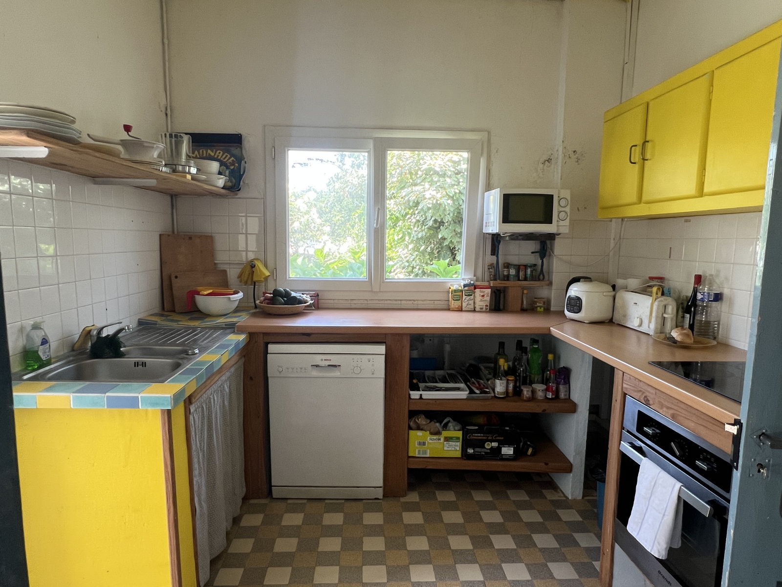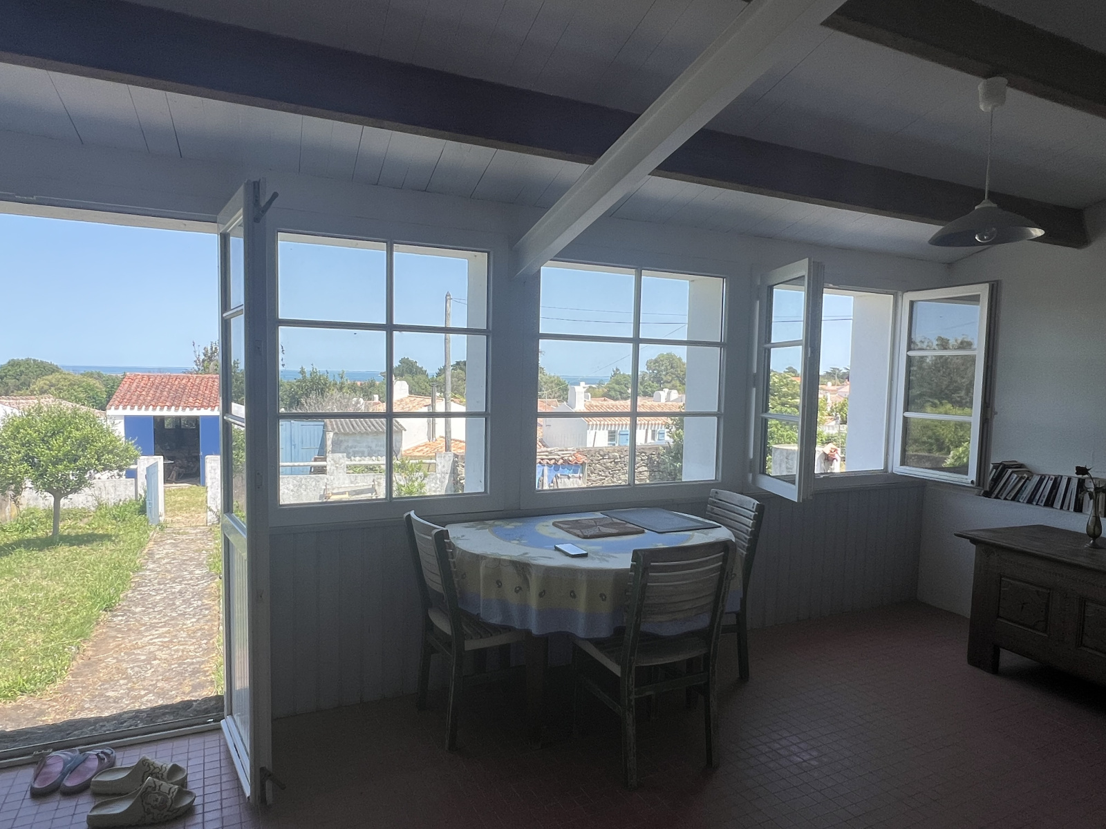 Maison charmante de 121 m² sur les hauteurs de Ker Chalon se composant d'une salle à manger VUE MER, salon avec cheminée, chambre, cuisine, salle d'eau, W.C.,buanderie/couloir. Attenant à la maison : un coin nuit. A l'extérieur : une chambre avec cheminée, chambre avec salle d'eau, W.C. Cour intérieur, le tout sur une parcelle de 333m². De l'autre côté du chemin : un grand garage de 28m² et un garage à vélos, bucher sur une parcelle de 94m². Zone UP : emprise au sol possible de 90%.